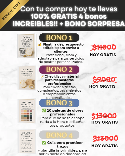 Sí. Incluye bonos exclusivos como plantillas, checklists, paletas de color, guías imprimibles y más.